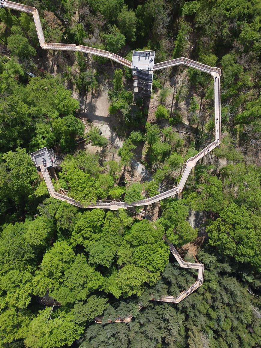 • Der Pfad führt über Rampen und Treppen bis in 30 Meter Höhe mit wunderbarer Fernsicht. (Der Pfad ist nicht barrierefrei)